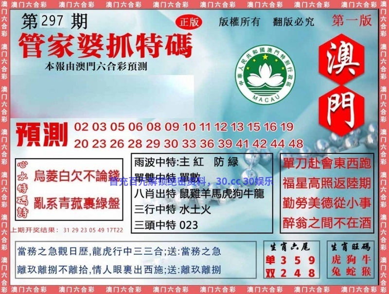 297期:九肖(兔牛羊猴猪马鸡虎)开狗44