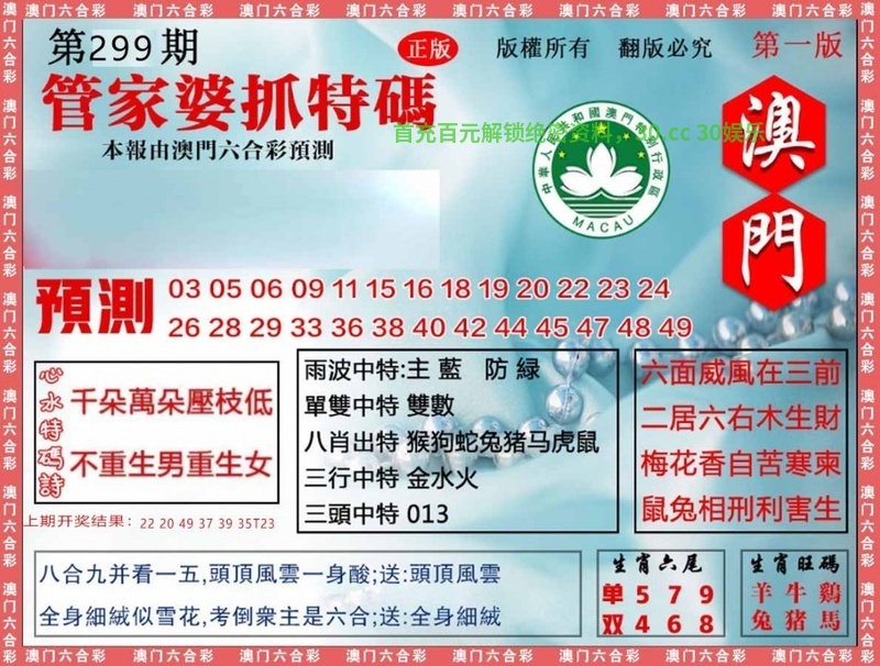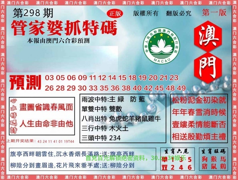 299期:绿蓝红肖(绿肖红肖)开蛇49